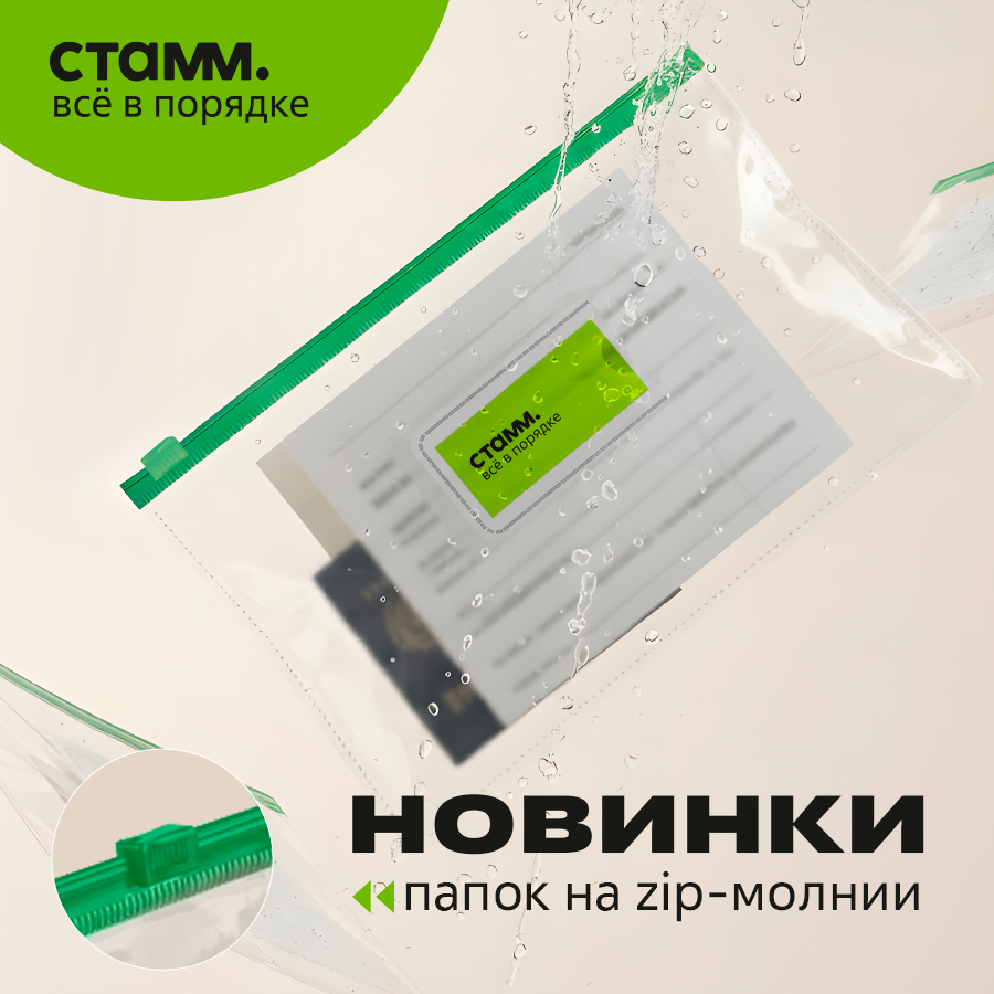 «СТАММ» представляет универсальное решение для организации документов — новые папки-конверты с надёжной zip-молнией. Новинки созданы для тех, кто ценит порядок и защиту самых личных документов. Благодаря диапазону размеров от А4 до компактного 255×130 мм легко подобрать вариант для любых задач: от хранения важных договоров до переноски билетов на самолёт или мелких канцелярских принадлежностей.