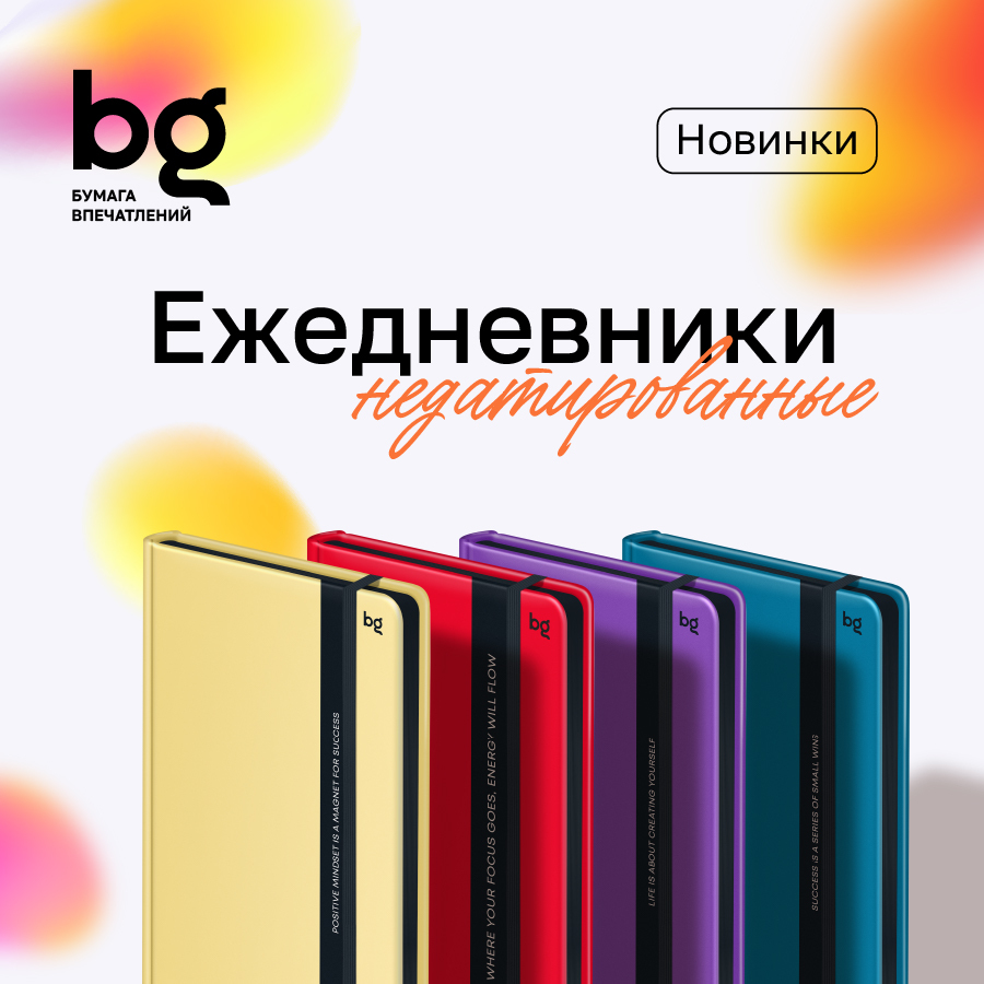 Ассортимент bg дополнили три серии недатированных ежедневников в разных стилях и форматах. Внутренний блок всех новинок содержит 136 листов белой бумаги, которая подходит для любых ручек и не просвечивается. Ежедневники доступны в форматах А5 и А6 в зависимости от серии. Обложка изготовлена из твёрдого картона.