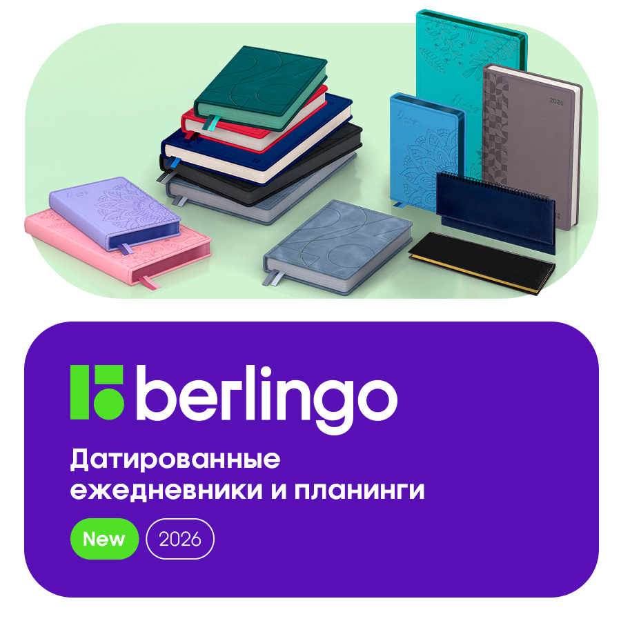 Berlingo представляет коллекцию датированных ежедневников и планингов на 2026 год, созданных для тех, кто ценит организацию времени. В ассортименте представлены форматы А4 (B5), A5 и A6 — идеальное решение для разных задач и предпочтений.